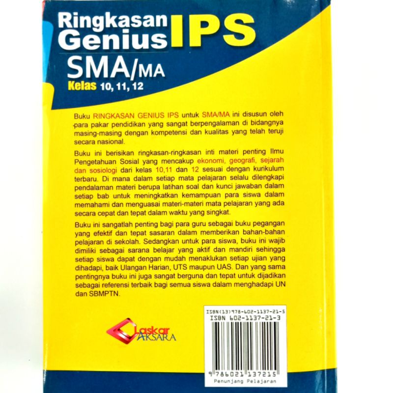 Harga Buku Penunjang Pelajaran - Ringkasan Genius IPS SMA/MA Kelas 10,11,12 saat ini masih murah hanya Rp. 30.000,00, kita tidak akan pernah tahu tentang Harga ini di masa depan, juga stok barang ini nanti atau besok hari, bisa saja harganya naik tinggi atau bisa juga stok sudah Habis.