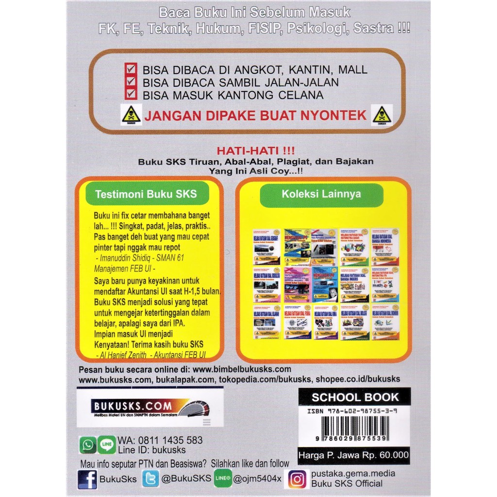 - Produk ini tidak sedang Flash Sale, tidak semua Seller suka Flash Sale, saya rasa ini bukan kekurangan, Jika Anda anggap Harga Rp. 135.000,00 itu murah untuk ORI!! PAKET BUKU MENGUASAI IPS, SKOLASTIK, TPA : SISTEM KEBUT SEMALAM - GEMA ya ambil saja